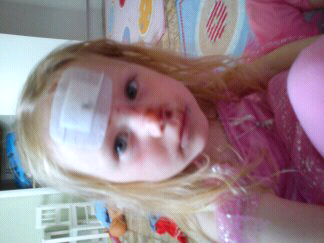 Filippa var så duktig inne på akuten och sa inte ett knyst. Dom limade och gjorde rent det djupaste såret i pannan.
